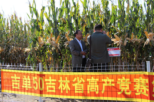 室外的50畝雜交玉米品種種植展區,展示了當前國內種企最前沿、具潛力的優良品種,是此次展會有別于前十屆的一次創舉,成為本次展會的一大特色。展區按品種熟區劃分,我公司展出了吉單50、吉單558、吉單631、吉單441、吉單33、吉單53、吉單27等11個名優新品種,這些品種展現出了優良的綜合性狀。吉林省種子管理總站陳學軍副站長、研究員主講介紹的“室外種植展區品種種植情況報告會”的數據統計報告中,我公司報送的吉單50、吉單441、吉單631、吉單53、吉單558、吉單27更是以優異的綜合表現,在全種植區170余份展示品種中,成為38個綜合性狀最優秀豐產性最好的品種之一。