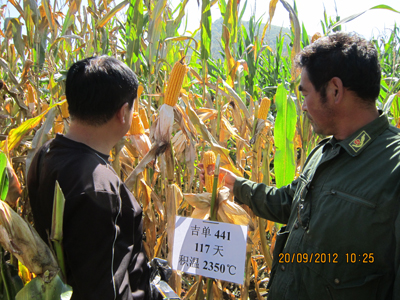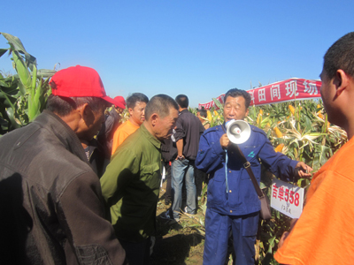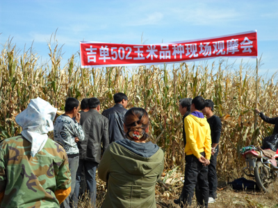 2012年9月20日——2012年10月15日,公司在內(nèi)蒙古自治區(qū),興安盟、通遼、達(dá)拉特旗、突泉、呼和浩特等地,依托經(jīng)銷商以村屯為單位,少則十幾人、多則數(shù)百人,分別召開了吉單27、吉單502、吉單505等品種的現(xiàn)場(chǎng)會(huì)。在達(dá)拉特旗昭君鎮(zhèn)城拐村,農(nóng)民和經(jīng)銷商參觀了付性農(nóng)戶12畝地的吉單502生產(chǎn)田,其種植密度達(dá)到每畝4600株,當(dāng)場(chǎng)估產(chǎn)達(dá)到每畝2000市斤以上。周圍的農(nóng)戶都表示實(shí)際看到心里有了底,來(lái)年一定多種植吉單502。